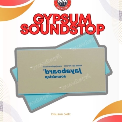 Dengan ketebalan 12mm, gypsum soundstop memiliki struktur papan yang lebih padat dibanding gypsum biasa sehingga mampu membantu menahan rambatan suara melalui dinding partisi. Material ini biasanya dipasang pada sistem partisi gypsum dengan rangka hollow atau metal stud, dan untuk hasil peredaman yang lebih maksimal dapat dikombinasikan dengan rockwool atau glasswool.