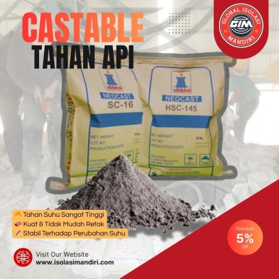 Jual Castable tahan api 25Kg merupakan material semen cor refractory yang dirancang khusus untuk aplikasi suhu tinggi pada tungku, furnace, boiler, incinerator, dan berbagai instalasi industri. Produk ini menjadi pilihan utama proyek karena daya tahan panas tinggi, kuat, dan mudah diaplikasikan, baik untuk pekerjaan lining baru maupun perbaikan.