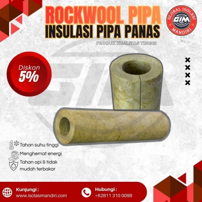 Rockwool pipa efective meredam panas hingga 650celcius pada bidang pipa section anda, material mudah diaplikasikan dan ringan.